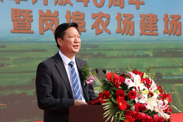省农垦集团公司党委副书记姚准明在致辞中高度赞扬了岗埠农场60年历程和辉煌的成就。他指出,建场60年来,一代代岗埠人在农场公司历任党委正确领导下,弘扬艰苦奋斗、勇于奉献、开拓创新的农垦精神,开沟渠、修水利、建电站,栉风沐雨、辛勤耕耘,使“七荡一洼”的盐碱地变成良田沃土,实现岗埠翻天覆地的变化。作为江苏农垦这个大家庭的一员,公司党委要不忘初心、牢记使命,进一步发挥“两个核心”作用,全面的、务实的、创造性的贯彻落实集团党委决策部署,岗埠农场公司要以实施乡村振兴战略、公司制改造和建场60华诞为新起点、新动力,进一步解放思想、主动担当、积极作为,努力建设经济强、产业优、职工富、生态美、农场兴的新农场。