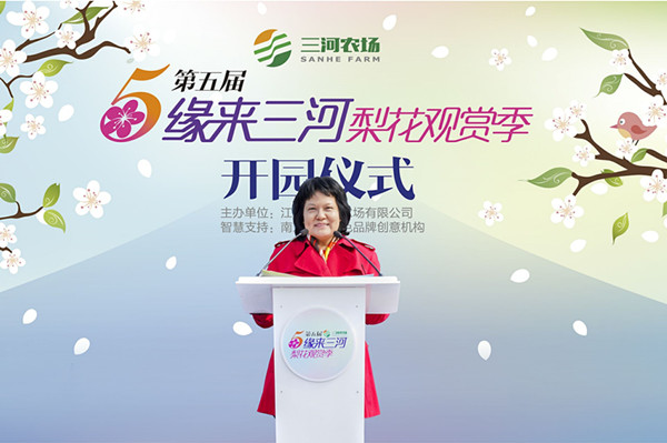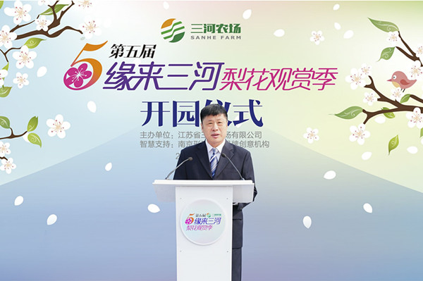 盱眙县副县长王西成出席开园仪式,并代表盱眙县委、县政府对三河农场有限公司第五届“缘来三河”梨花观赏季活动的盛大开园表示热烈祝贺。他说,三河农场有限公司作为盱眙境内唯一的省属农垦单位,是盱眙现代农业的样板和标杆,