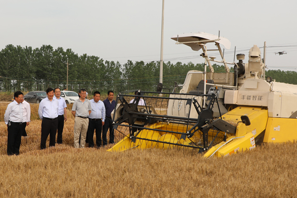 胡兆辉一行首先来到智能灌溉育秧现场,观看了智能喷灌系统育出的秧苗,听取了临海的情况介绍,对临海注重技术创新,加强精细化管理所取得的成绩给予肯定,临海分公司将物联网人工智能云平台与农业结合,利用物联网服务平台“物联网、移动互联网、计算云”技术,借助PC终端、智能手机,实现灌溉的远程监测和控制,省时省力,做到精准调控,精细化管理表示赞赏。胡兆辉深入到收割田间,查看茎杆切碎装置,检查在田大麦的成熟度。在场头,基层单位负责同志向胡总汇报了上场麦子的晾晒、囤存与管理情况。
