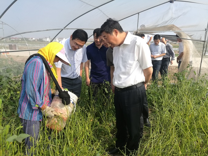 胡兆辉一行先后来到淮安区席桥现代农业园区、钦工镇宋集村、涟水县涟城街道林场村、高沟镇前进村、灌云县图河镇现代农业园区,实地调研了“一宅一花”园艺种植示范基地、粮食(种子)烘干加工中心、瓜菜订单种植、种子烘干加工中心、豆丹示范养殖基地等产业帮扶示范项目。所到之处,胡兆辉认真听取项目负责人汇报产业帮扶项目建设情况及帮扶成效,详细了解项目投产后运营状况,对产业帮扶工作中如何“探索长效机制、实现双赢发展”提出具体要求。