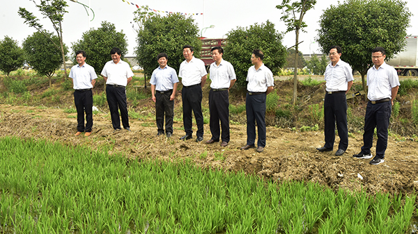 在先后考察了在田水稻的长势长相,场部小城镇环境整治及污水处理情况,利用闲置资源、引进优质种源试验示范培育的美国红栎容器苗长势情况,大华种业白马湖分公司的夏熟种子收储情况的基础上,胡兆辉总经理对白马湖今年以来的各项工作表示了肯定,对江苏农垦经济社会发展形势和加大民生公益事业投入等政策进行了通报,对当前和下一步工作提出要求: