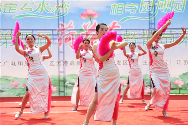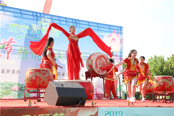 荷之形,亭亭玉立、摇曳多姿,代表着生态自然、秀外慧中的云台形象。紧接着荷文化文艺汇演在精彩的开场鼓《盛世鼓舞》节目后正式拉开帷幕。本次荷花节的宣传亮点是开通了连云港手机台全程直播,吸引了3万多名游客在网上收看荷花节直播盛况。开幕式还特别邀请了连云港市广播电视台著名主持人李华参与主持,音乐人王从键和交通广播主持人小海分别送上了动听的歌曲。接下来,大家一起欣赏了淮海戏折子戏《回娘家》、非遗项目海州五大宫调《一轮明月》、武术表演《卧虎藏龙》、农场公司舞蹈《花样年华》等节目,赢得了现场嘉宾及游客的阵阵掌声。演出现场还穿插了红包雨、幸运游客抽奖等互动环节,吸引了众多游客热情参与,现场氛围十分活跃。