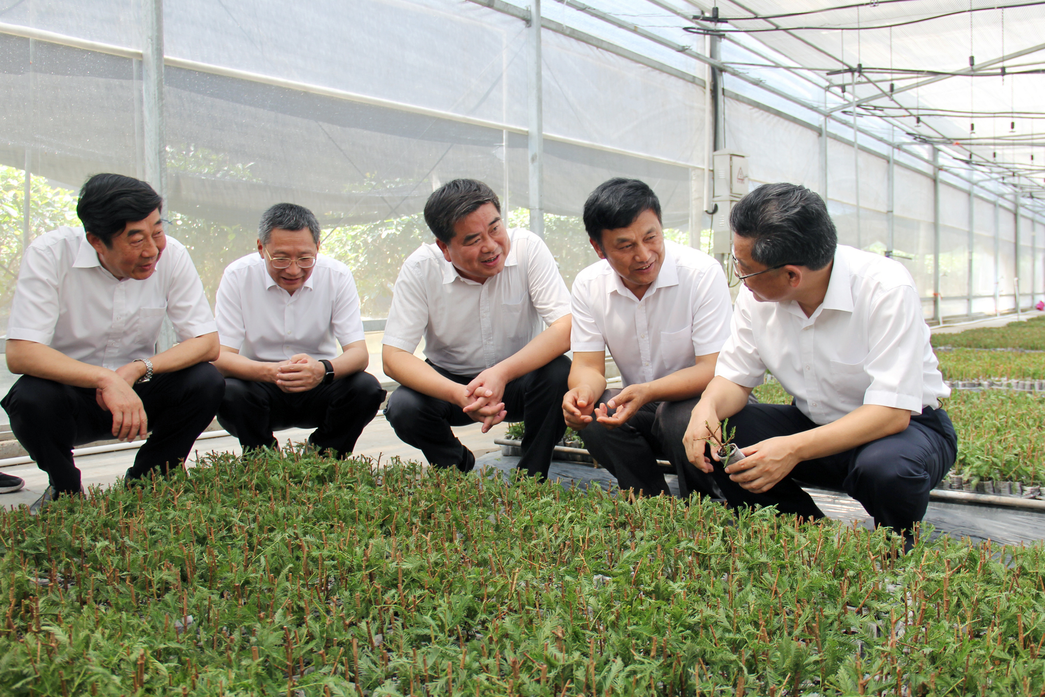 任振鹤一行首先察看了�港农场的展板介绍。当了解到农场实现粮食高产稳产,水稻亩产达1300斤、小麦达1000斤后,任振鹤表示肯定。随后,任振鹤走进�港农场有机农庄连栋大棚,详细察看中山杉容器育苗和红心火龙果种植。看到大棚里中山杉规格齐全,所育品种耐渍耐盐、扦插成活率稳定在70%以上,应时水果火龙果长势喜人、丰收在望,市场前景比较好,任振鹤表示赞赏,并勉励农场公司更加重视研发,加快成果转化,推动农业产业化。在听取了�港农场党委书记王世伯介绍的“常规农业高效化、高效农业规模化、有机农业特色化、林苗产业精品化”发展思路后,任振鹤频频点头,对�港农场坚持有机农业20年,大力发展“三西”产业(西瓜、西兰花、西红花)的做法表示肯定。