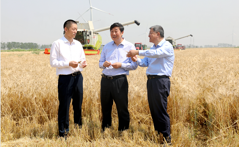 胡兆辉先后查看了黄海门户公园、林业苗木基地、新建烘干线项目建设现场、大麦收割现场和整地作业现场,听取情况汇报,每到一处都亲切慰问奋战生产一线的员工。