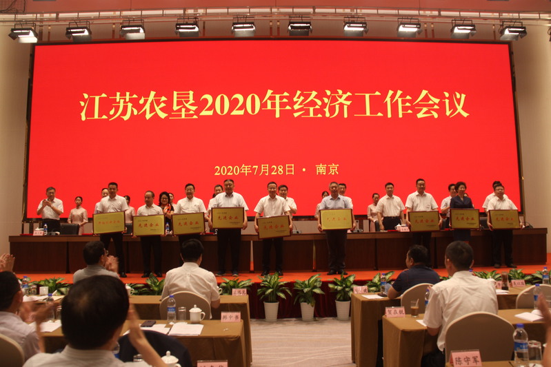 会上,苏垦农发公司、通宇公司、正大天晴药业、东辛农场公司、新洋农场公司、江心沙农场公司等6家单位作了发言交流,黄海农场公司、苏垦麦芽公司、滨淮农场公司、苏垦南通公司、宝应湖农场公司、云台农场公司等6家单位作了书面交流。会议向江苏农垦2019年度先进企业、开拓创新企业、优秀合资企业、农场社区工作先进单位颁发奖牌;表彰了江苏农垦第五届劳动模范;宣读了对2018-2019年获得市厅级以上表彰以及2019年获得科技创新成果的单位予以奖励的决定、对农场公司土地整治新增耕地指标交易工作给予专项奖励的决定。