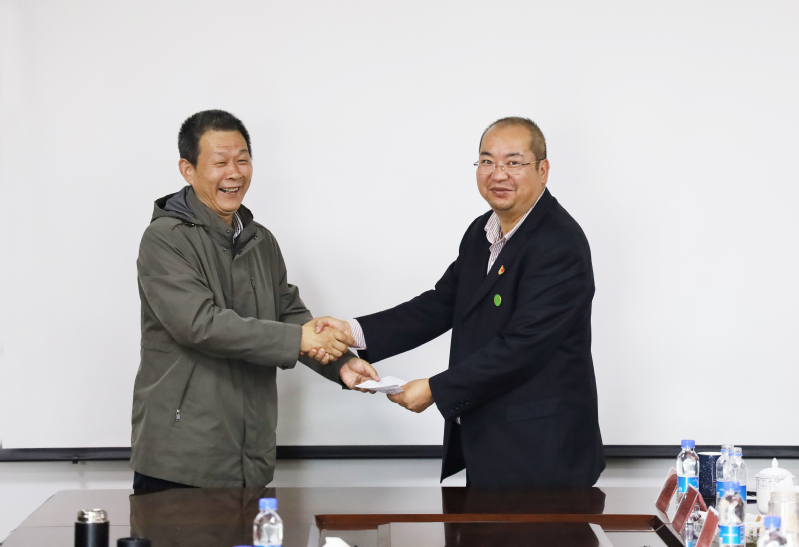 图为座谈会及捐赠场景。