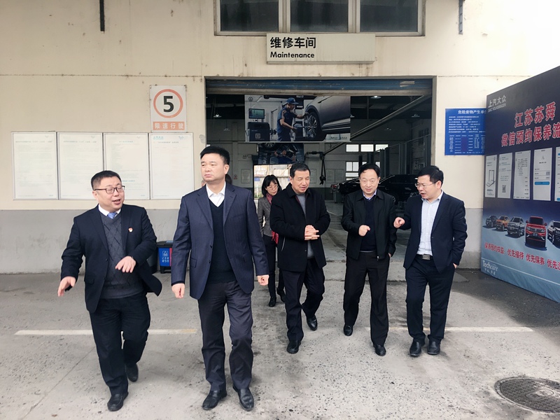 姜建友、刘耀武一行先后深入到苏舜板桥4S店综合体、安吉店、苏汽店、锦尚店及省旧机动车交易市场等现场实地调研,详细了解苏舜经营状况。在座谈期间,听取了苏舜公司企业概况、“十三五”总体情况及“十四五”发展思路等汇报。